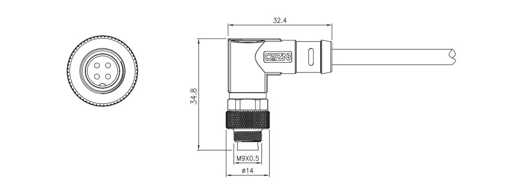 | M9 Angled Male Overmolded Plug | M9-P4-MWD-xPV-S | M9-P4-MWD-xPV | 4 Pin A-code | ||