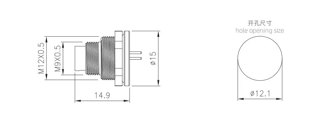 | M9 Male Back Mount Socekt(PCB) | M9-P2-GPFM12 | 2 Pin A-code | ||
