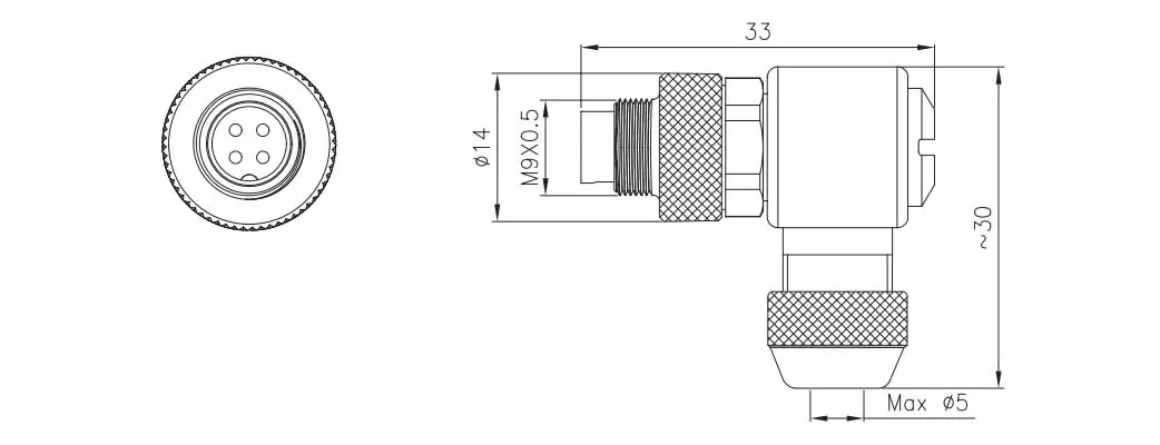 | M9 Angled Male Metal Plug (Solder) | M9-P5-GWD05 | 5 Pin A-code | ||