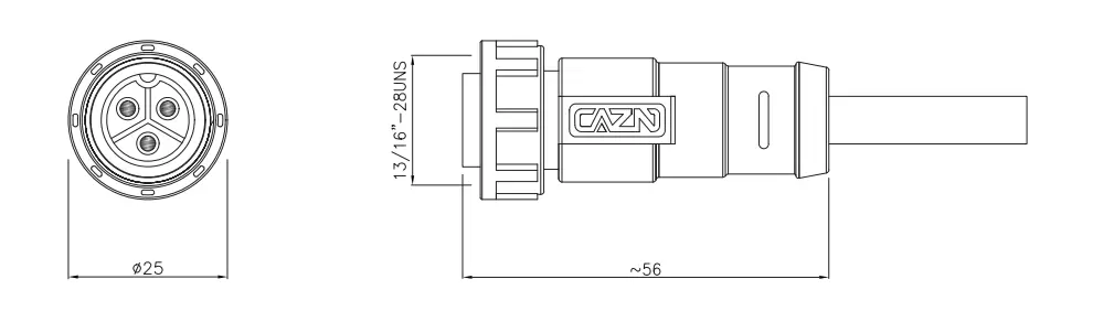 | E13 Straight Male Overolding Plug (Threaded) | 300V | 20A | E13T-P2B-MWA-xPV | 2B | ||