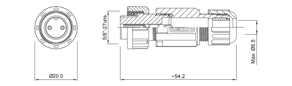 | E10 Straight Female Field Installable Plug (Threaded) | 60V | 5A | E10T-S7-PWA06 | 7 | ||