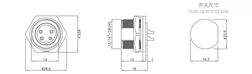 | E13 Back Mount Female Receptacle (Threaded) | 300V | 20A | E13T-S4B-PWF | 4B | ||