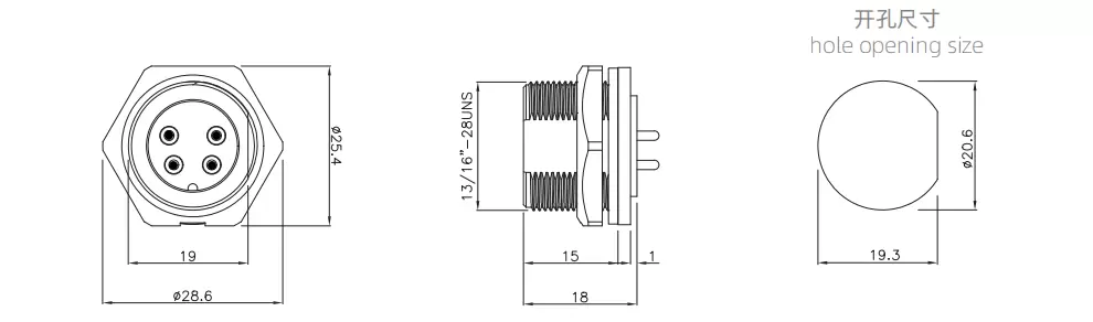 | E13 PCB Back Mount Male Receptacle (Threaded) | 300V | 20A | E13T-P3B-PPF | 3B | ||