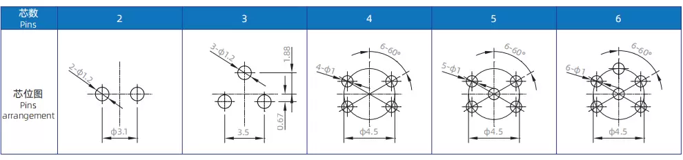 | E7 Male Back Mount PCB Receptacle(Bayonet) | 60V | 2A | E7B-P6-PPF | 6 |