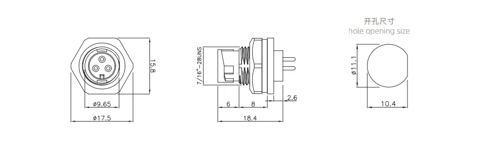 | E7 Male Back Mount PCB Receptacle(Bayonet) | 125V | 5A | E7B-P3-PPF | 3 | ||