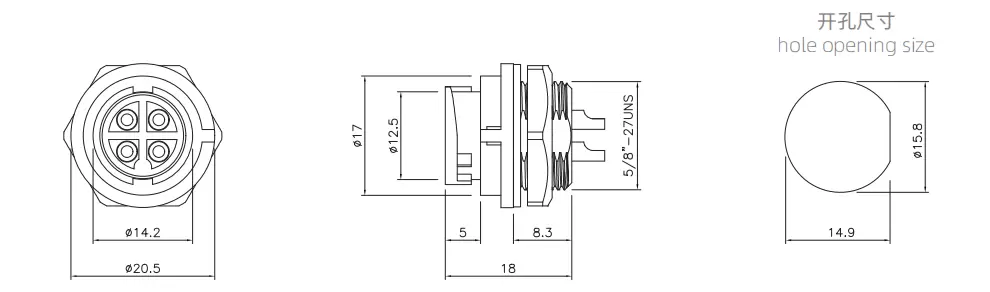 | E10 Female Front Mount Solder Receptacle(Bayonet) | 60V | 5A | E10B-S4-PWB | 4 | ||