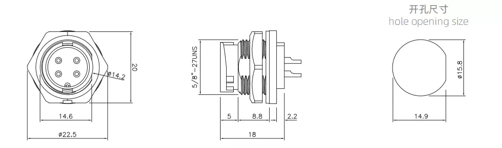 E10 Female Front Mount Solder Receptacle(Bayonet)