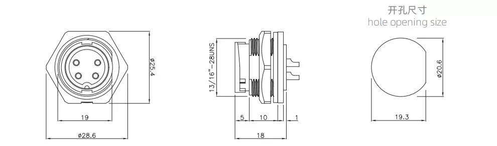| E13 Back Mount Female Receptacle (Bayonet) | 300V | 20A | E13B-S4B-PWF | 4B | ||
