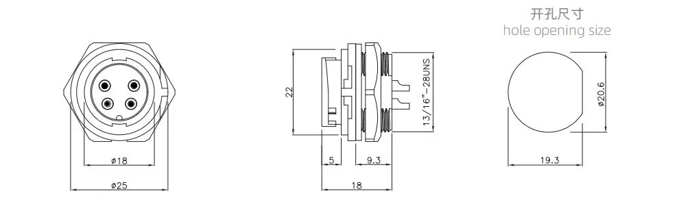 | E13 Front Mount Male Receptacle (Bayonet) | 300V | 20A | E13B-P4B-PWB | 4B |