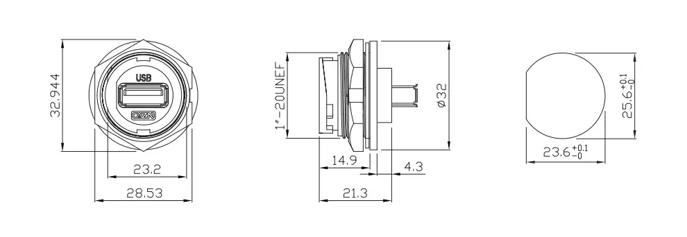 | E16 EUSB Female to Female Receptacle(Bayonet) | USB 3.0 | E16B-FU3-PRF |